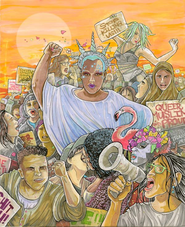 Revolution (14x17, Ink, Marker, Acrylic Paint, Gel Pen, Bristol Board)