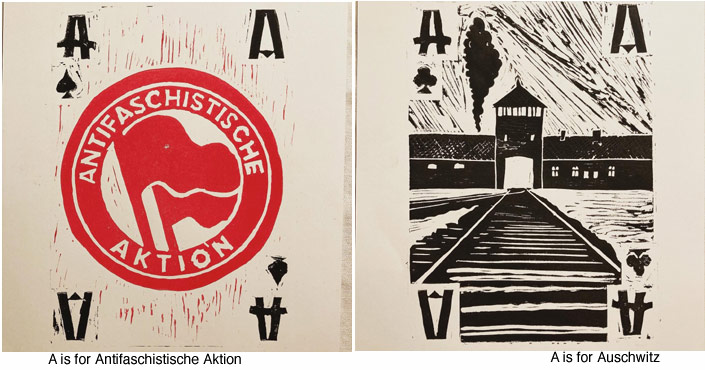 By comparing and contrasting different themes and objectives directly, I have attempted to address the glib centrist position that both 'extremes' are as bad as each other. The notion that those that propose genocidal policies and those that oppose them are somehow equivalent shouldn't even need to be taken seriously, but here we are. The abecedaria are meant as a basic introduction to the subject matters of which many talented historians and researchers have written. My work can only serve as a signpost to theirs and I am indebted to them. The deck of cards is symbolic of the games of politicians, with the stakes being unthinkably high. This work is dedicated to all the victims of fascism living and dead. No Pasarán.