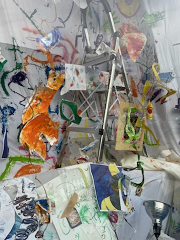 This installation asks about the kind of liberation that comes in the wake of catastrophe. I like the name Noah because there is a "no" and an "ah." G-d (or some inner voice beyond ego) comes down with a NO – a "you cannot go on this way any longer" and then an AH! appears – a revelation, an awakening, a way forward that used to be invisible.